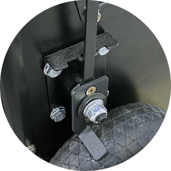 安全に使用するためタイヤストッパーで固定します。※傾斜地などで使用する際はさらに輪留めなどを使用してください。