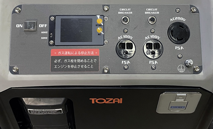 | 運転可能時間(定格負荷) | 20〜52時間(50kgボンベ時) |