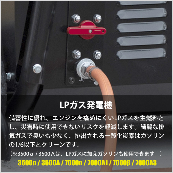 | 使用燃料*1 | LPG(プロパンガス)、無鉛レギュラーガゾリン |